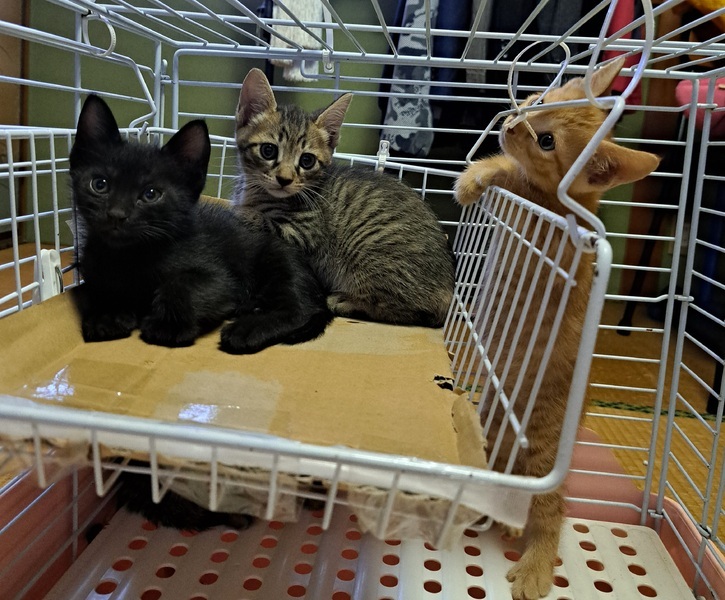 | 特徴(性格など) | キジトラ 男の子 黒猫 男の子 茶トラ 男の子 兄弟です 人なつっこい子たちです |