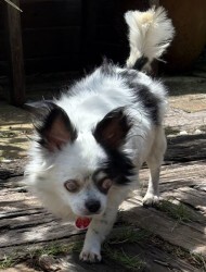 | 特徴(性格など) | ■特徴 (仮名:コロン) チワワ♂白黒 推定10歳 体重4.5キロ ※角膜障害、眼球ろうの為、両目視力はありません。 ■性格・暮らし ・人懐っこくとても甘えん坊です。 ・他の犬、猫ともそつなく暮らせます。 ・お留守番、就寝共いたずらはしないのでフリーで過ごせます。 ・室内トイレはシートで出来ます。 ・お外は大好き。リードを付けてのお散歩は練習中です。 ・両目とも見えませんが、後を付いてきていつもそばにいます。 ・食いしん坊で何でもよく食べます。 ■今までに行った医療行為 ・フィラリア検査(-)(5/28) ・5種混合ワクチン (6/12) ・検便(-)(6/13) ・健康チェック (6/18) ・血液検査(6/18) ・避妊手術(6/30) ・歯科処置(6/30) ■今後行う予定の医療行為 ・狂犬病予防ワクチン ・定期的な眼科通院 |