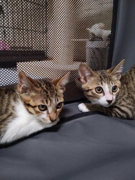 | 里親募集する理由 | 生後約1か月の兄妹猫を近所で保護しました。周囲に母猫の姿がなく、まだ幼くこの猛暑のなか命の危険があると判断し、保護に至りました。保護後は健康チェック・初期ケアを行い、現在は元気に過ごしています。この子たちが本当の家族と出会い、幸せな猫生を送れるよう、あたたかく迎えてくださる方とのご縁を探しています。 | ||