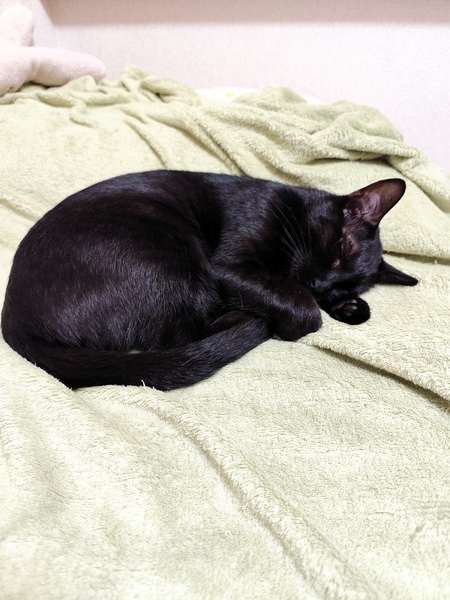 | 特徴(性格など) | 黒猫、しっぽは細長い、よく見ると全身にうっすらシマがあります 目は緑がかった金目 性格は食いしん坊、で甘えん坊 抱っこ、キャリー、洗濯ネットは苦手です |