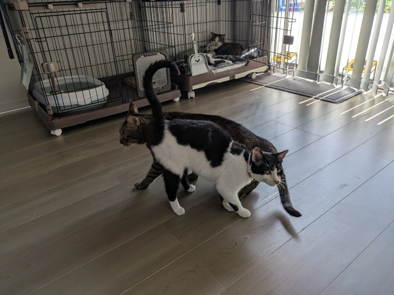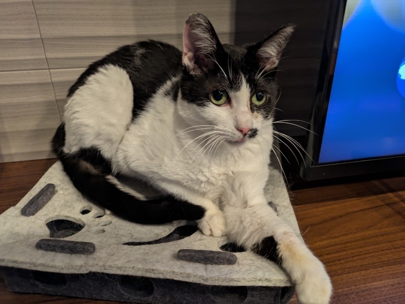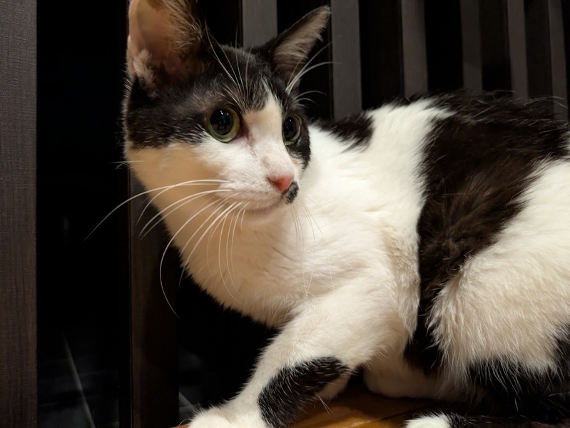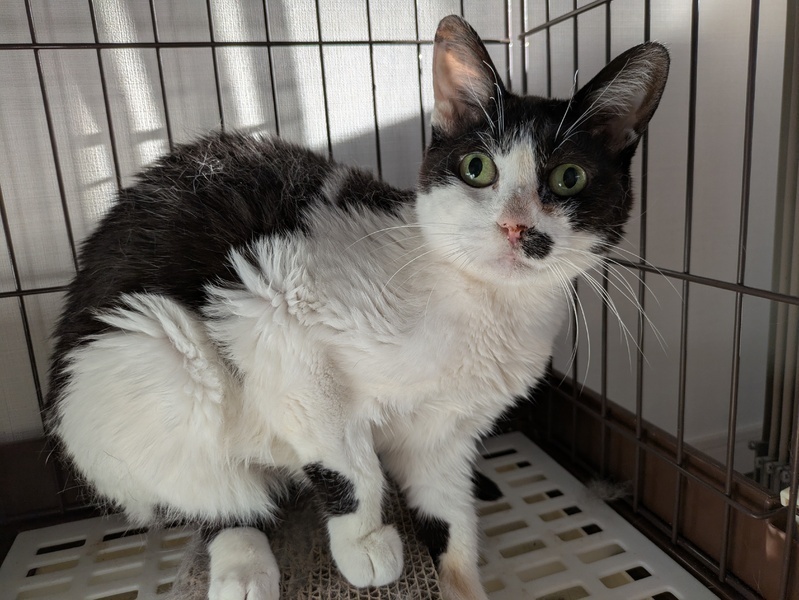 | 特徴(性格など) | 色柄 黒×白 ・とても小柄です ・臆病で怖がりです ・威嚇はしますが攻撃性はありません ・とても大人しく静かです ・猫が好きで甘えた声を出します ・切歯が少なく舌ペロしてる時が多いです ちなみにシャーしたあとに舌ペロします ・水分量が多めのウェットフード大好きです ・トイレの散らかしがありません ・爪とぎも上手にできます ・ちゅーるも好きで直接の指ちゅーるできます ・すぐ人馴れすると思われます |