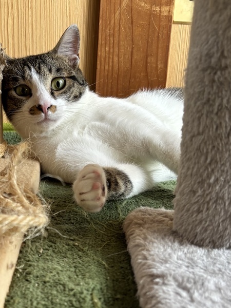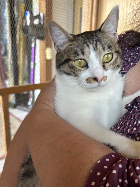| 特徴(性格など) | 白の多いキジシロちゃん。 尻尾が短いです。 最初から凄く人慣れしてて甘えん坊で抱っこもできます。 自分からスリスリしてきます。 とても可愛いです。 推定8カ月ぐらいだと思います。 |