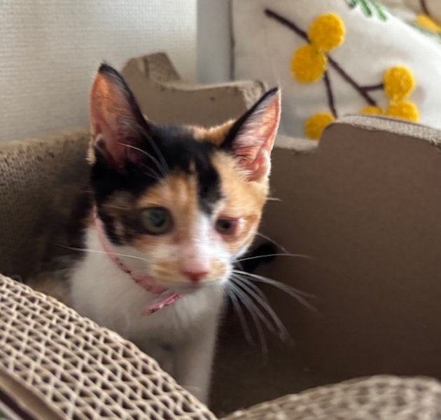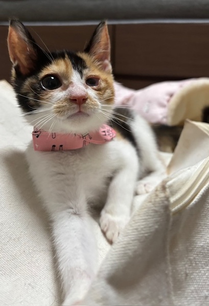 | 特徴(性格など) | ☆☆☆ご希望の方は、以下のアンケートフォームにご記入の上、送信してください☆☆☆ ねこ親希望アンケート→ http://chibawan.net/contactform_cat 【猫No】3955 【愛称】マナ 【性別】メス 【年齢】推定2ヶ月(25/05/30頃生) 【毛色】ミケ 【体重】1.2kg 【状態】 不妊手術済、ワクチン接種済(25/7/30)、血液検査済(エイズ-、白血病-)、マイクロチップ装着済、ノミダニ駆除済、駆虫済、トイレ躾済 【預かり場所】 我孫子市 【日記】https://www.instagram.com/pupu_pipi_edamame/?hl=ja Instagram @pupu_pipi_edamame 【経緯】柏市動物愛護ふれあいセンターより引き出し 【性格】 人が大好きです!自分から近づいてきて撫でてとアピールしてきます。ひとりで部屋中を走り回って遊んでいます。 脚の長い綺麗なミケ女です。 普段の生活などをインスタに載せていますので是非見てください。 【備考】 まだ子猫なので環境の変化などで体調の急変なども考えられる為、お留守番の時間がなるべく短いお家を希望しています。体調の変化に気がつき速やかに動物病院を受診してくださる方を希望します。 【その他】 猫風邪が悪化した影響で左目の瞬膜が現在癒着していますが不妊手術時に瞬膜を切開してもらいました。 以下の条件をご快諾頂き、預かり宅から1時間半以内のご家庭からのアンケートをお待ちしております。 ・愛情いっぱいの終生飼養 ・ネコにあった生活スタイル ・完全室内飼育および脱走防止対策、ゲージの設置 ・定期的なワクチン接種などの健康管理 ・譲渡後も猫の様子をご連絡頂ける方 なお、お世話をする方がご高齢の方、単身者のお申し込みにつきましては、お断りする場合がございますので予めご了承ください。 |