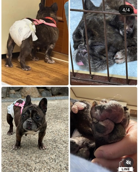 | 特徴(性格など) | 【仮名】ぷあ 【性別】女の子 【犬種】フレンチブルドッグ 【生年月日】不明 推定7歳 【体重】6.2kg 【トイレ】練習中です。 【お散歩】出来ます。 【留守番】ケージ、フリーどちらも出来ます。 【トリミング】月に一度のシャンプー 【健康状態】膝外転、鼻水がでています。 【お薬】鼻水を止めるお薬投薬中 【詳細】小ぶりで可愛い子です。右前、後ろ足が弱くよく転けますが、小走りでよく走ります。所々にたこがあります。普段は他犬と問題はありませんが、その時の気分で唸ることがあります。 お散歩も歩きますがこけることがあります |