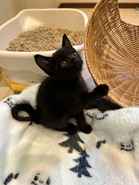 | 特徴(性格など) | 黒猫3兄妹男の子です。 おとなしい男の子です。尻尾まっすぐです。 カリカリ食べたます。 トイレも大丈夫です。 |