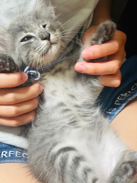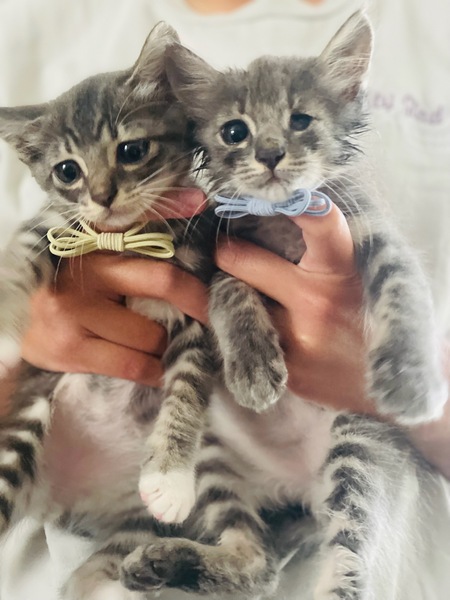| 特徴(性格など) | 色、サバトラ、グレー、生後約2ヶ月オス猫ちゃんです。 人慣れもすごくしており、甘えたな2匹です。 5匹兄弟で産まれ残り2匹になりました。 グレーの子は、生まれつき小眼球と診断されました。 猫ウイルスなどは全く関係なく他の猫ちゃんにうつりません! |