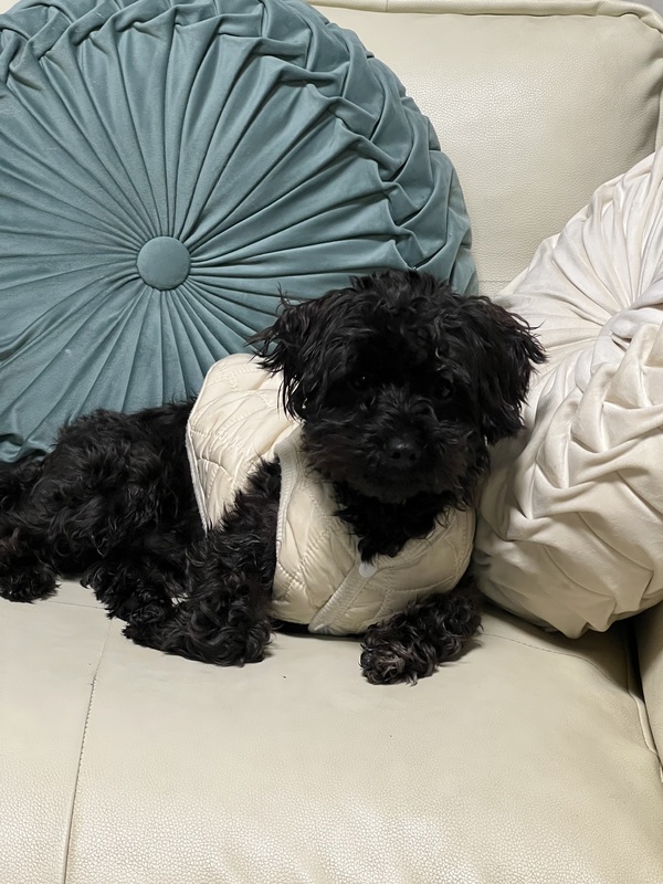 家トリミングなのでブサイクになってしまいましたが、ほぼ黒プードルです
