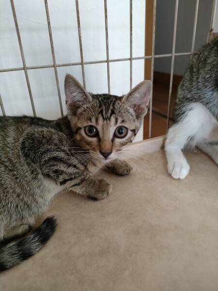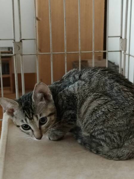 | 特徴(性格など) | キジトラ。小柄です。3兄弟で保護いたしましたが、兄弟の中では一番臆病かなと思います。臆病なので少し馴れるのに時間がかかるかもしれませんが、長い目で接していただける方のご応募お待ちしています。 エイズ、白血病はとみに陰性です。 |