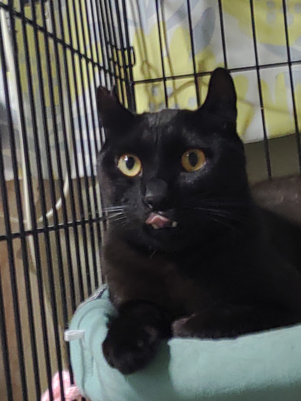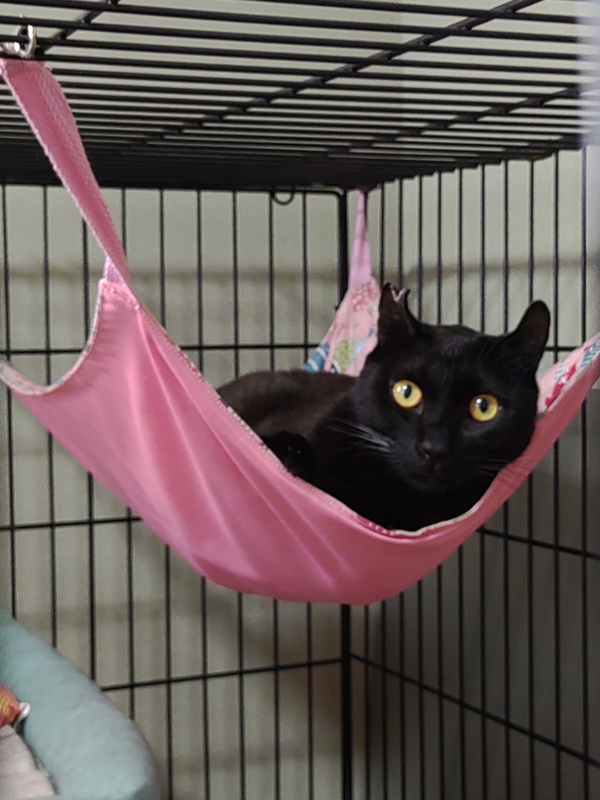 | 特徴(性格など) | 艶々のクロネコさんです。 尾の先は丸っぽく、少し反り気味の小さい耳。 クロヒョウのようなカッコよさ(ちょっと褒めすぎ) 声は小さめ、体は小柄であまり大きくならないような気がします。 オスなのになんだかメスを世話しているような気になります。 とても元気で遊び好き。 ですが体調や気温によってクシャミや鼻水が出る時があり猫風邪持ちみたいです。 環境が変わると警戒してウーシャーパンチが出るかと思いますがちゅーるで仲良くなれます(^^) 最初ゆっくり見守って下さればと思います。 今では鼻挨拶してくれますし、お膝に乗せられます。 猫大好きで誰とでも仲良くしたいみたいです。 まだまだ子供っぽいので同年代の先住猫さんがいらしてもすぐに馴染めると思います。 構われたくない猫から怒られたらきちんと避けてるので空気は読めるタイプかと。 それでもクルクル鳴いてフセして様子を窺ってる姿が可愛いです。 保護部屋には他にも猫がおり、短時間しかフリーにしてあげられないのでケージに横庭を作って広げるとオモチャやボールで遊んでます。 ケージが嫌ではないらしくフリーにしてても疲れたら大人しく戻って寝てくれてます。 人を呼んで鳴かないし、お留守番も平気みたいです。 |