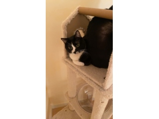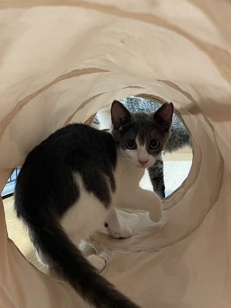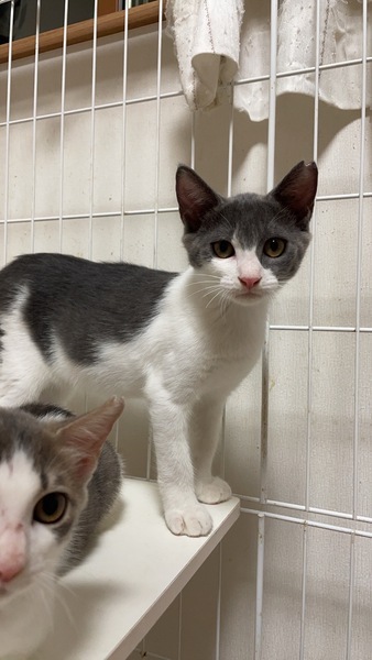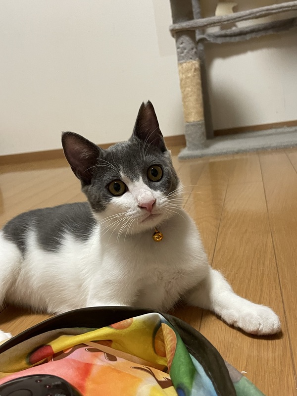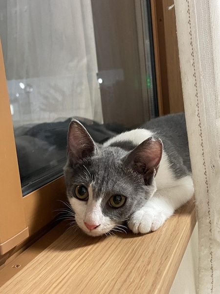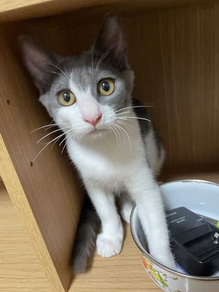 | 特徴(性格など) | 珍しい濃いグレーと白色の毛色でとても毛並みがいいです。 撫でられるのが大好きな甘えん坊です。 |