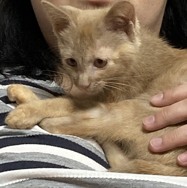 | 特徴(性格など) | まだ小さいので足は体毛がハッキリ茶トラの模様ご出てきてます。 甘えん坊で人懐っこい子猫ちゃんです。 |