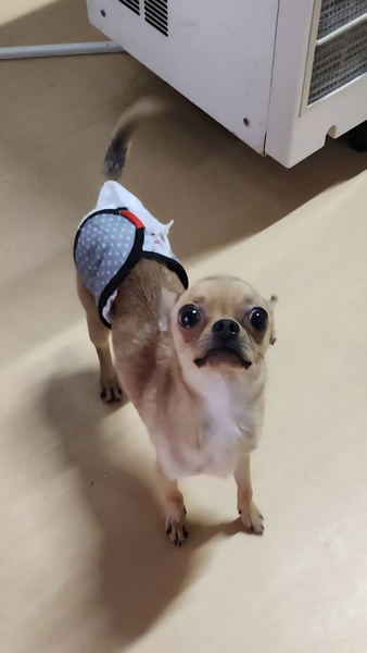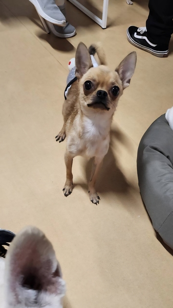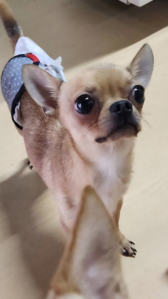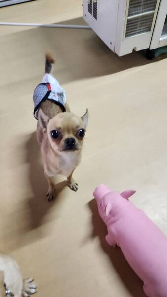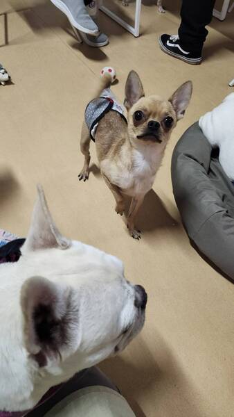 | 特徴(性格など) | 【仮名】からすみ 【性別】男の子 【犬種】スムースチワワ 【生年月日】2023.5.10 【体重】2.7kg 【トイレ】練習中です。 【お散歩】練習中です。 【留守番】フリーでもケージでも出来ます。 【トリミング】月1度程度のシャンプー 【健康状態】パテラ左グレード1右グレード2 【お薬】なし 【詳細】少し怖がりな性格で物音や人の動きに敏感に反応します。人見知りで慣れるには少し時間がかかるかもしれません。慣れれば活発で元気に動き回っています。食べる事が大好きなのでおやつで仲良くなれます。他犬と仲良く過ごせます。チワワ女子が好きでいつも引っ付いて寝ています。 |