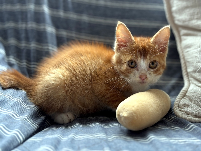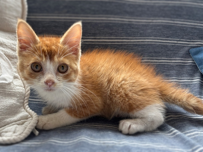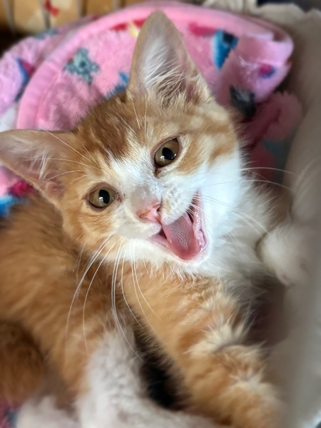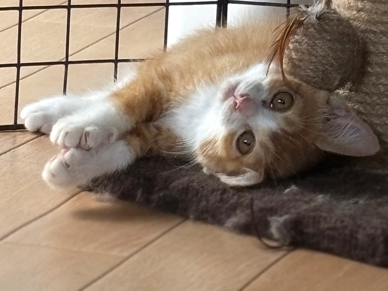 | 特徴(性格など) | 【仮名】ぷっか 【生年月日】2025年5月上旬頃 【種類】ミックス 【毛色】レッドタビー&ホワイト 【性別】オス 【去勢】未(適齢になり次第飼い主様でお願いします) 【駆虫】これから予定 【ワクチン】未(体調を見て接種予定) 【猫エイズ・猫白血病】子猫の為、未検査 【健康状態】保護当時、猫風邪をひいていたため投薬を行い、現在はとても元気に過ごしてます。 【性格】臆病な性格で野良の子だったと思われ警戒心もありましたが、現在は声をかければ喉をゴロゴロ、甘えたくなれば鳴きながら寄ってきてくれます(^^) ひとりで保護しているため、ひとり遊びも得意でずーっと同じおもちゃで遊んだり飽きないで楽しんでます! だんだん活発になってきました(´∀`) |