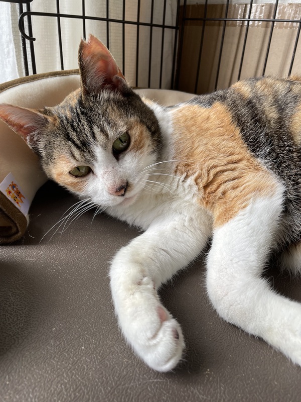 | 特徴(性格など) | 10歳という年齢もあり静かで穏やかです 少々三毛猫気質な所はありますが、ひとのそばに来てお腹を出して甘えて来る可愛い子です |