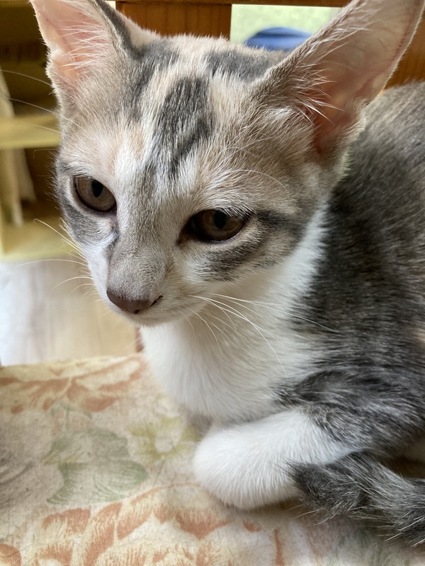 | 特徴(性格など) | 非常に珍しいパステル三毛模様。少し困った顔をしていますが、お茶目な性格です。誰とも仲良くできる人懐こい女の子です。 | ||