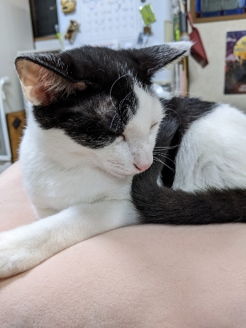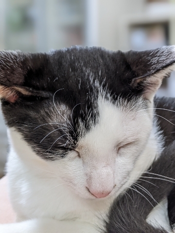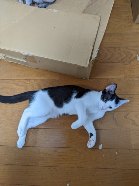 | 特徴(性格など) | 白黒トラ。 しっぽが長くてまっすくな子です。 しっぽを触ると気持ちいいです。 黒い部分はよく見ると縞が入っています。 調べてみたら「黒トラはめずらしい」「大人になると消えることもある」そうです。 どんな模様の大人になるかという楽しみもある子です。 トイレはきちんとやります。 爪切りも嫌がりません。 段ボールやオモチャでよく遊びます。 名前は仮称です。かわいい名前をつけてあげてください。 |