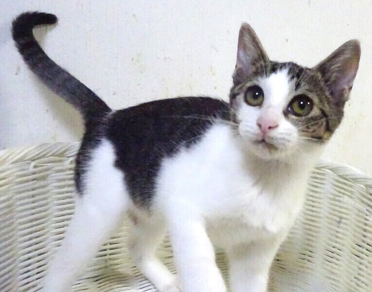 | 特徴(性格など) | 仮名: まどかちゃん、メス 毛色: キジ白、尻尾長い 性格: 威嚇はしたことがなく、すんなり抱っこ出来、爪切りも大丈夫です。 人が近づくと寄ってきてスリスリしてくれます。 懐っこいけど、捕まえようとすると遊びと思って、逃げたり、飛んだり跳ねたりして遊んでいます。 姉妹の真広ちゃんと一緒のご縁があると嬉しいですが、とてもビビりで触ろうとすると逃げるので、人馴れしていませんから別々で構いません。2匹は追いかけっこしたりして遊んでいますので、猫社会の学習は出来ていると思います。 じゃらしも好きです。 優しい先住猫ちゃんがいるところでも大丈夫と思います。 お届けは千葉県内で千葉市幕張から車で1時間圏内でお願いします。 検便済 駆虫済 ワクチン済 猫エイズ・白血病ウィルス検査はともに陰性です |