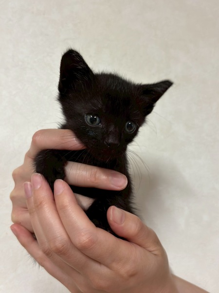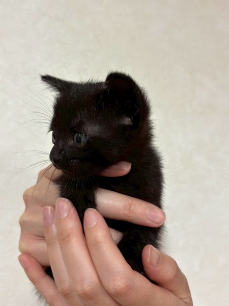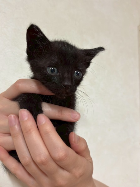 | 特徴(性格など) | 真っ黒なオスの子猫です。 よく鳴いて元気です。 歯ももう生えていてチュールをしっかり食べます。 おしっこも猫用のトイレでしました。おりこうさんで可愛い子猫です。 |