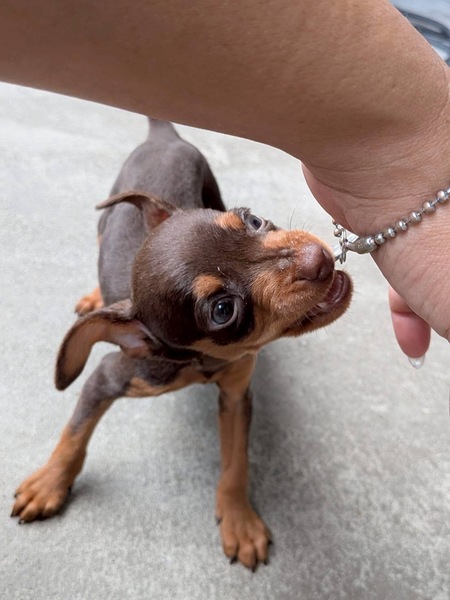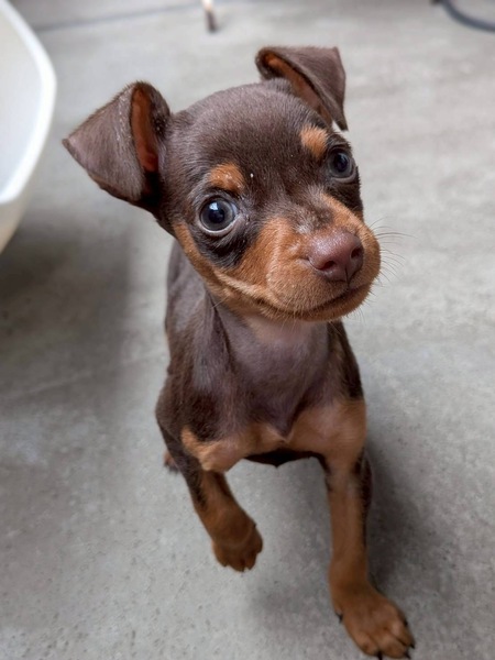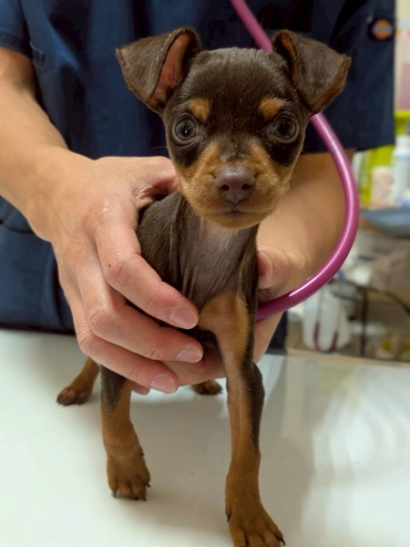 | 特徴(性格など) | 『25D-054』ミニピン♂ロイ ◆預かりブログ◆ ※ ご応募前に必ずお読みください。 https://www.instagram.com/azupins/ ◆特徴◆ 【保護経緯】 協力団体より保護 【保護日】 2025.7.29 【仮名】 ロイ 【性別】 ♂ 【犬種】 ミニチュアピンシャー 【年齢】 2025.6.1生まれ 【毛色】 チョコレート&タン 【体重】 1.04kg(2025.8.14現在) ◆性格・日常◆ 【性格】 子犬らしく活発、天真爛漫 【トイレ】 トレーニング中 【お散歩】 未 【留守番】 ケージ 【就寝時】 ケージ 【お手入れ】 問題なし 【犬との関係】攻撃性ありません 【猫との関係】攻撃性ありません 【人との関係】 甘えん坊 【その他】 ・ご自身の責任下で犬飼育経験がある方 ・適齢期に去勢手術をお約束できる方(要証明書提出) ・幼齢のためお留守番の短い方 (4時間以内、子供のみ、高齢者のみとの留守番不可) ・主にお世話される方が55歳以下2名以上のご家庭 ・事故防止のため未就学児のいらっしゃらないご家庭 ◆これまでに行った医療◆ 【混合ワクチン】 1回目済 【血液検査】 未実施(幼齢のため) 【フィラリア検査】未実施(幼齢のため) 【耳ダニ検査】 済み 【避妊去勢手術】 未実施(幼齢のため) 【スケーリング】 未実施(幼齢のため) 【マイクロチップ】済み 【体外寄生虫】 済み 【体内寄生虫】 済み 【その他】 ◆今後行う予定の医療◆ 混合ワクチン 狂犬病予防注射 去勢手術 ◆必要な継続医療◆ |