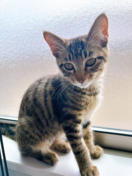 | 特徴(性格など) | 2025.5.1生まれ(推定) 毛色:キジトラ 身体の小さな女の子。 少食で、モデルのようなスリムさんです。 けれど元気いっぱいで、他の子とにゃんプロを毎日楽しんでいます。 色が薄めのキジ猫ちゃんで、とっても甘えんぼさん&妹キャラの可愛い子です。 人に甘えたくてたまらないので、すりすりと強めに体をこすりつけてきます。 |