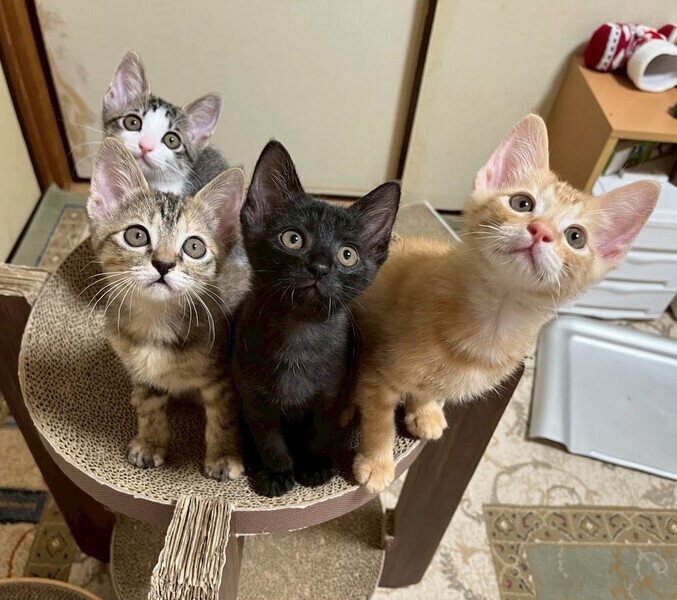 | 里親募集する理由 | とあるお家のボンネットの中に親子で入り込んでいたところを救出しました。 ママ猫:ジャフィー 兄妹猫:クロス ステラ ラパン 現在預りボランティア宅で家猫修行中!! 預かりボランティア宅での様子はコチラ↓ https://www.instagram.com/yosi.d.a/ |