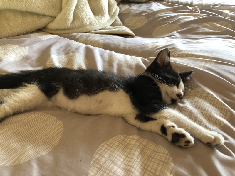 | 特徴(性格など) | ハチワレ&キジトラ、白黒の女の子です。 口元や肉球など、所々にある黒い斑点が何とも愛くるしいです。 子猫ちゃんなので、遊びたがりですが、比較的大人しめです。 |