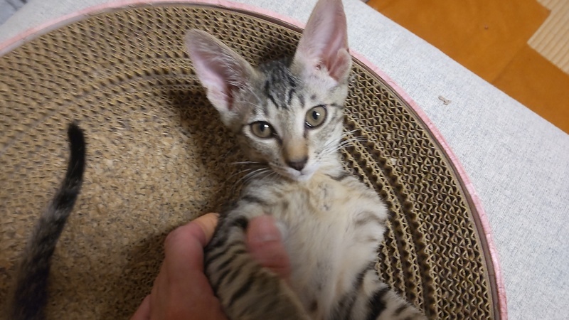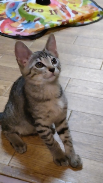 | 特徴(性格など) | 優しい色のキジトラ女の子 人馴れしています、 他の猫さんとも仲良し、 トイレも上手に使い、お留守番も良い子で出来ます。 夜泣き無し、かみ癖無し、 新しい環境では、初め緊張すると思います、 慣れるまで、お付き合い頂けます里親さま、宜しくお願い致します。 |