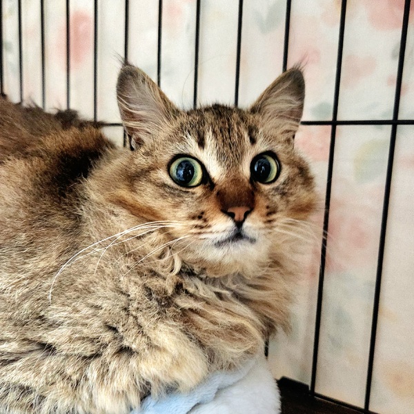 | 特徴(性格など) | 長毛でおっとり大人しい女の子です。 めちゃくちゃ可愛いです。 |