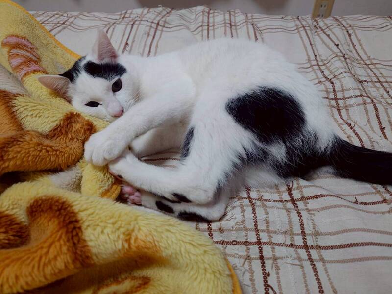 | 特徴(性格など) | 2025.3.1生まれ(推定) 毛色:白黒 とっても元気な白黒男子。 背中の三つ丸がチャームポイント☆ 食いしん坊さんで、ゴハンの時間は大きな声で鳴いてアピール全開!! 遊びに対してはマイペース。寝る時は身体をピーンと伸ばして寝ます笑 大人猫にも、自分より小さい子猫にも毎日全力で戦いを挑んでいます♪ 人間に対してはとても甘え下手な子なので、ゆっくりじっくり距離を縮めていくと、 段々甘える姿を見せてくれるようになるタイプです。 |