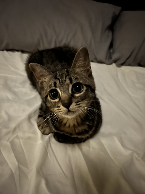 | 特徴(性格など) | キジトラです。 とても元気で人懐こくて、犬みたいな性格かと思う程人間が好きな性格です。 少し鼻炎気味です。複数の病院で複数回診察、検査しましたが特に問題はなく、健康そのものです。 |