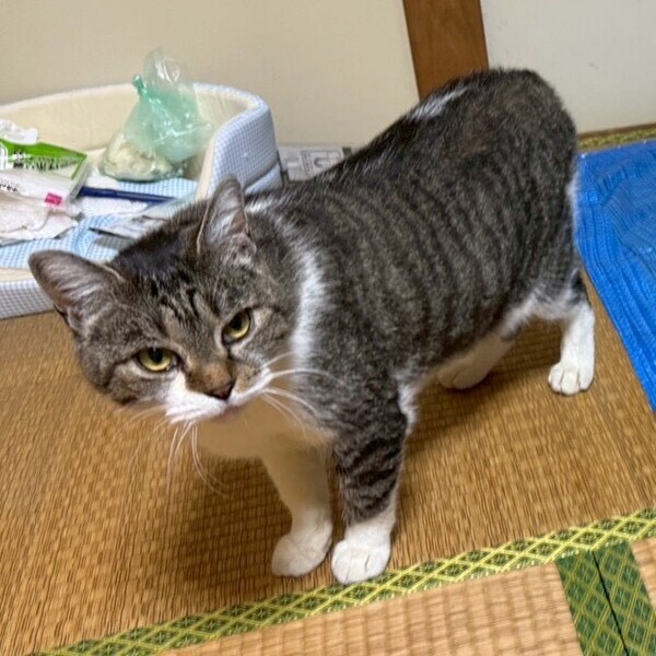 | 里親募集する理由 | 2025/1月に初めてお庭に現れました。その時から凄く人懐こくて小柄な猫さんだったので、まだ若い子なのかな?とご飯をあげましたが、居着くことなく来なくなってしまいました。 2ヶ月後の3月半ば、とても大きな猫さんが来ました。特徴的なお顔の柄から1月に来た子だ!とわかりましたが、お腹が大きいように見えて、妊娠してるかも?と保護しました。 病院で検査をしましたが、妊娠はしていたけど子宮蓄膿症になってしまったため流産をしてしまったようです。 現在は回復しています。 |