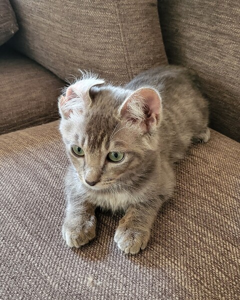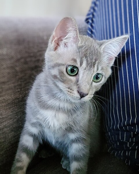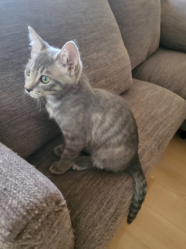| 特徴(性格など) | やんちゃ・元気・甘えん坊のいかにも子猫らしい子猫。 遊ぶの大好き食べるの大好きです。 緑の目とグレーの毛並みが綺麗で、うっすらシマシマが入っています。 別に募集しているキジトラのいくら君と仲が良いため、2匹一緒にお迎えいただける方も大歓迎です! ○エイズ・白血病陰性 ○9/5 3種混合ワクチン接種予定 ○ノミダニ駆除済み ○回虫がいたため駆虫しました |