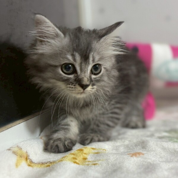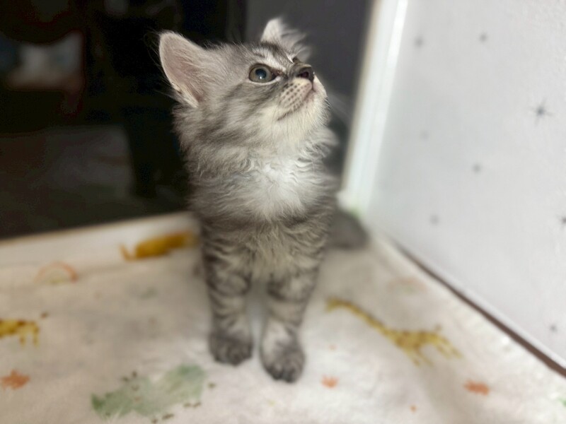 | 特徴(性格など) | サバ白の長毛さん。フワフワの柔らかい毛からして長毛猫さんに育ちそうです。 活発に暴走してます。 兄妹一緒の譲渡希望。同居猫と一緒のお家。年の近い先住猫さんがいるお家。 生粋の野良ママに育てられたため、人馴れ修行はこれからです。そこを踏まえて下さる方。 脱走対策を講じて下さる方。必要な医療にかけて下さる方。 |