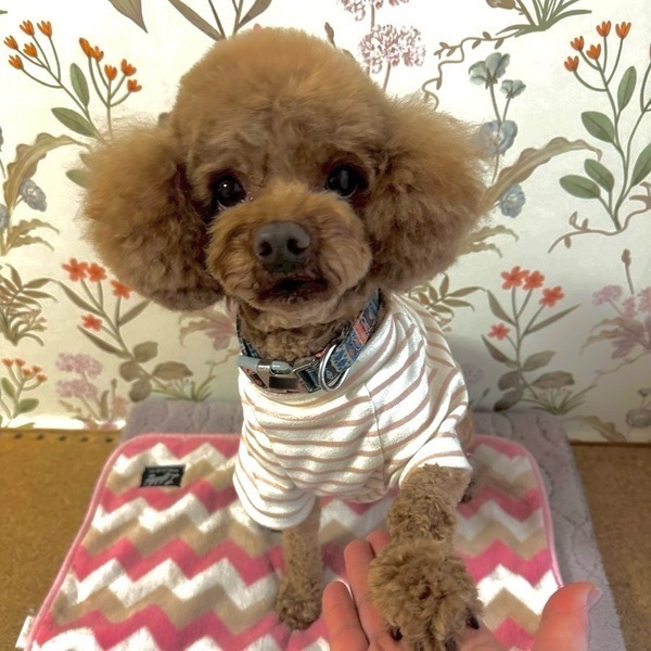 | 特徴(性格など) | 性格・特徴 【性格】 ちょっぴり怖がりさんですが、慣れてくるとお尻をピッタリくっつけて甘えてくれます。 抱っこや急に触られることはまだ苦手ですので、にゃ〜すくんのペースに合わせてゆっくり仲良くなって下さい。 【ご飯】 ドライフード(シュプレモでお願いします)39gを1日2回食べています。 フードは急な変更でお腹を壊さないよう、シュプレモでお願いします。 【お散歩】 お散歩は大好きで、楽しそうに歩きます。 お散歩で出会った人へ自分から尻尾を振ってご挨拶する等、積極的になりました。 迷子札は、首輪に刻印式のIDカラーで装着して頂く事と、ダブルフック型ショルダーリード使用のお約束をお願いします。 【トイレ】 トイレシートでトレーニングをしています。 トレーニングのご相談は承り、アドバイスさせていただきます。 【お留守番】 少し鳴くこともありますが、しばらくすると鳴き止み、サークルでお留守番できます。 (ソフトサークルは禁止とさせていただきます) 健康状態 ※ 医療に関しまして、当会では、里親様にお繋ぎするまでに、検査や手術、治療等のレスキュー団体で出来る最大限の努力の上で譲渡活動を行っております。ご理解頂ける方のみご応募ください。 名前 にゃ〜すくん 犬種 トイプードル 年齢 6歳ぐらい(推定) 性別 男の子 体重 5.45kg 体温 37.8℃ 心雑音 異常なし 検便検査 異常なし 血液検査 概ね異常なし 去勢手術 済み レントゲン 気管虚脱 気管支拡張症 (現在症状もなく日常生活に支障ありませんが、体重管理と経過観察をお願いします) フィラリア 陰性 ノミダニ予防 済み ワクチン 接種済み 虫下薬 投薬済み(2025.8.2) 狂犬病予防注射 済み 畜犬登録 済み マイクロチップ 挿入済み |