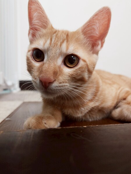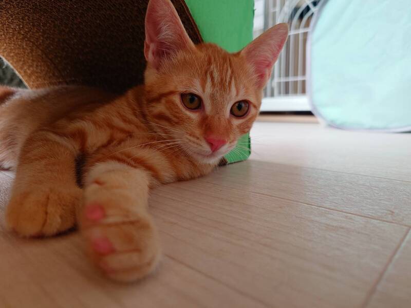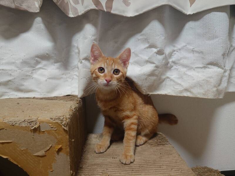 | 特徴(性格など) | 2025.3.15生まれ(推定) 毛色:茶トラ 4兄妹の中で1番人慣れしています。 顔を見ただけで喉をゴロゴロ鳴らしちゃう甘えん坊の男の子。 抱っこもOK。慣れてくると一緒に寝てくれます♪ 身体も大きめ。食いしん坊で、遊ぶのも大好きです!! |