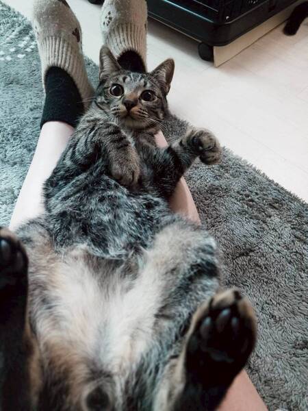 | 特徴(性格など) | 2025.3.15生まれ(推定) 毛色:キジトラ クリクリおめめがかわい男の子。 保護時はビビリさんでしたが、最近はと~っても甘えん坊になりました!! 常に人間のそばにいて、抱っこも大好きです。 控えめな性格ですが、オモチャで遊ぶ時はみんなに負けず走り回っています。 先住猫さんのいないお家か、今一緒に過ごしている相性の良い子と複数での譲渡を希望しています。 |
