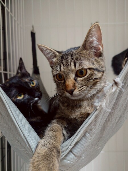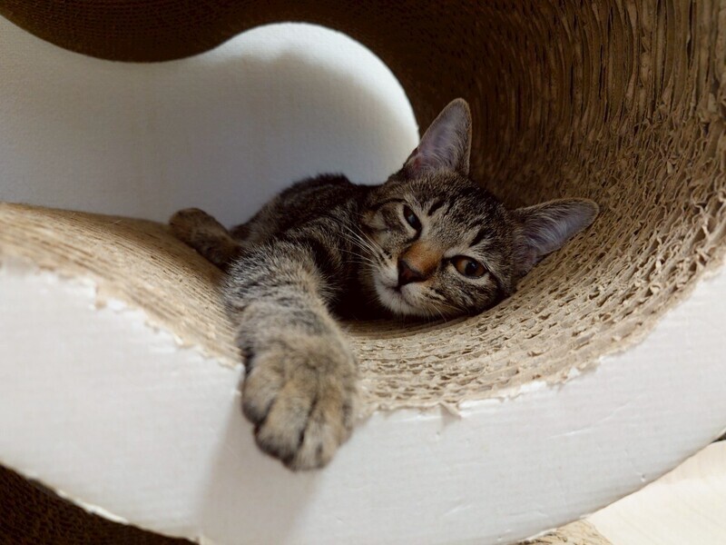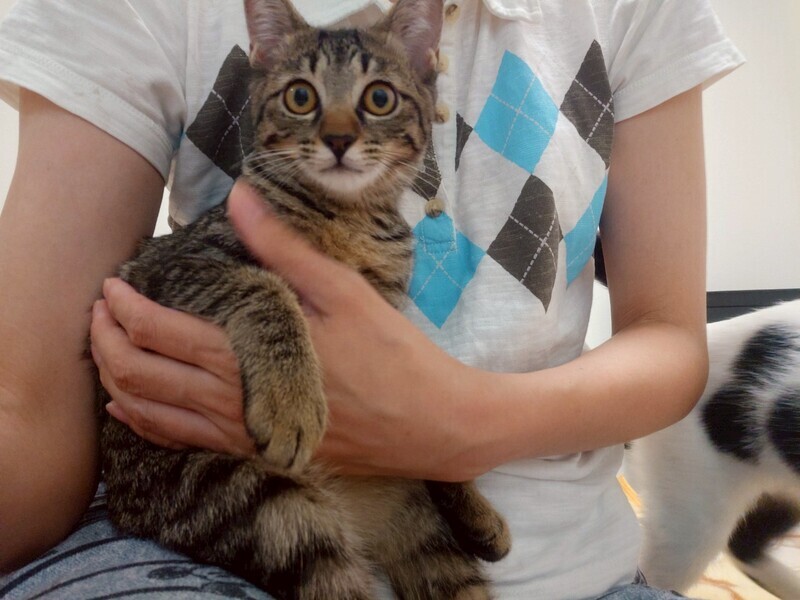| 特徴(性格など) | 2025.3.15生まれ(推定) 毛色:キジトラ モチモチすべすべボディの持ち主。 女の子だけどとっても食いしん坊さんです笑 人にも慣れていて、オモチャで遊ぶのも大好き!! 1人寝たり遊んだり、ソロ活していることも多いマイペースな子です。 |