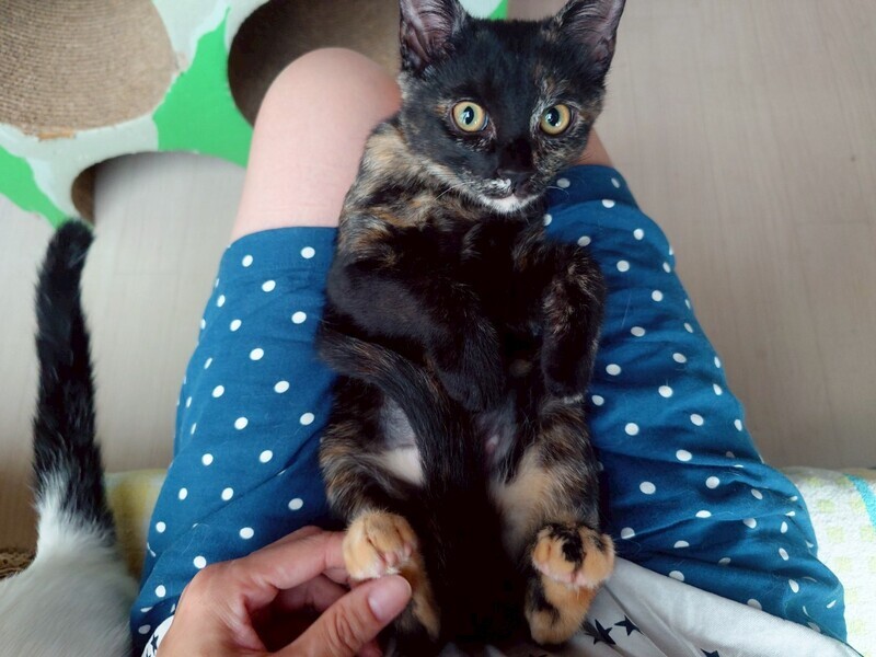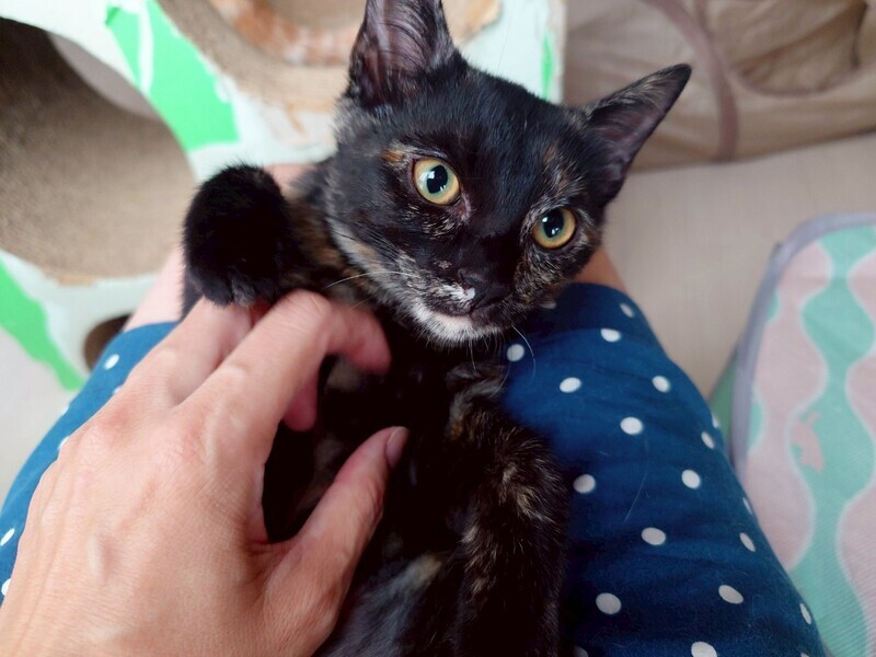 | 特徴(性格など) | 2025.3.15生まれ(推定) 毛色:サビ 両足だけ茶色なのがチャームポイント♪ 兄妹の中で唯一しっぽが真っすぐ長いです。 ビビリさんなので、すあまのペースに合わせてじっくりゆっくり距離を縮めていただける里親様と出会えたら嬉しいです。 猫とはとっても仲良しです!! |