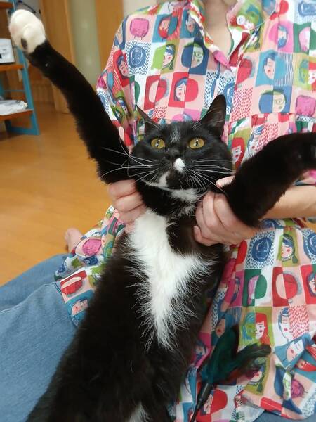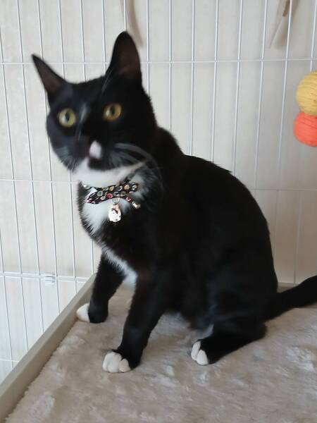 | 特徴(性格など) | 黒白ですが黒が多い 足は白ソックス 性格はとても甘えん坊で、元気いっぱいです 猫なれ 人馴れは大丈夫です ワクチンも9月半ばにする予定です。 |