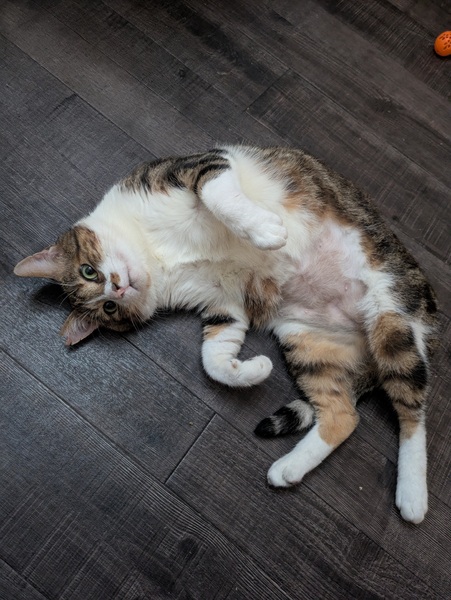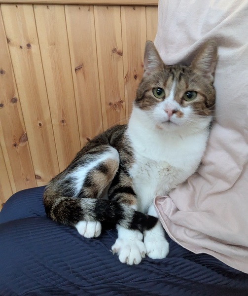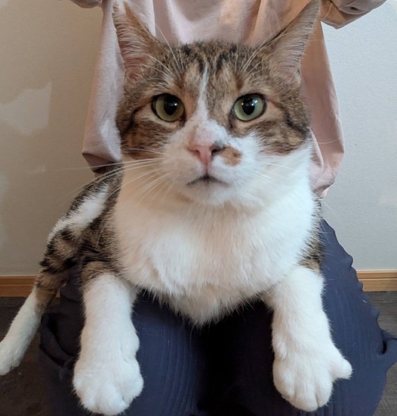 | 特徴(性格など) | 色柄 キジトラ・白・オレンジの縞三毛 。三毛猫同様、縞三毛でオスは相当稀だそうです。 元お外の子とは思えないほどお目々がルンルンしています。 体は大きめで治療の時に動物病院で計測した時は5.3kgでした。今はご飯もしっかり食べれるようになったので、もう少し重たくなったかとは思います。 性格・特徴 ・人懐っこく、穏やかで甘えん坊 ・動物病院でも暴れるどころか撫でてほしくてアピールするほど ・地域猫時代から他の猫とも仲良くできる優しい性格 ・トイレも問題ありません。しっかり砂をかけてくれるので匂いもあまりしません。砂をかける時に「ムォ~」と鳴く謎のクセがあります。? ?️健康状態 ・猫エイズ(FIV)陽性 ・猫白血病(FeLV)陰性 ・去勢済み ・体重:約5.5kg ・保護のきっかけになった怪我と体調不良は治療済みです。 |
