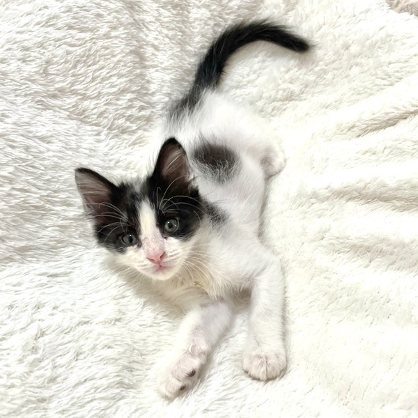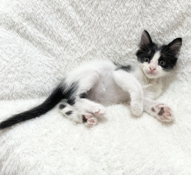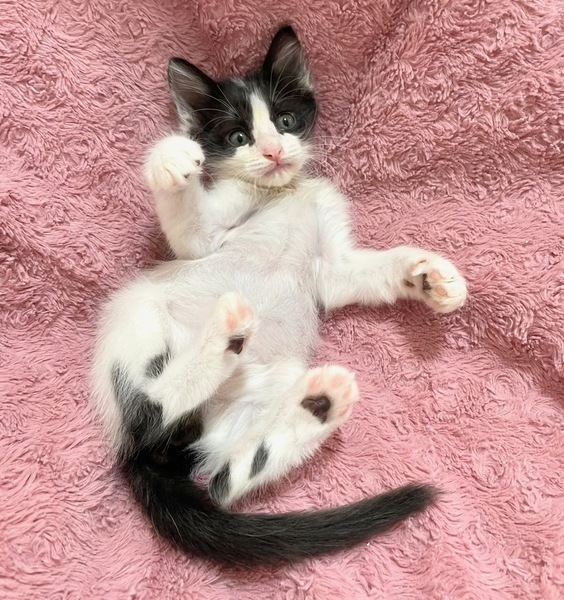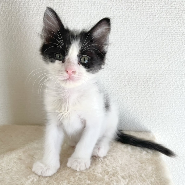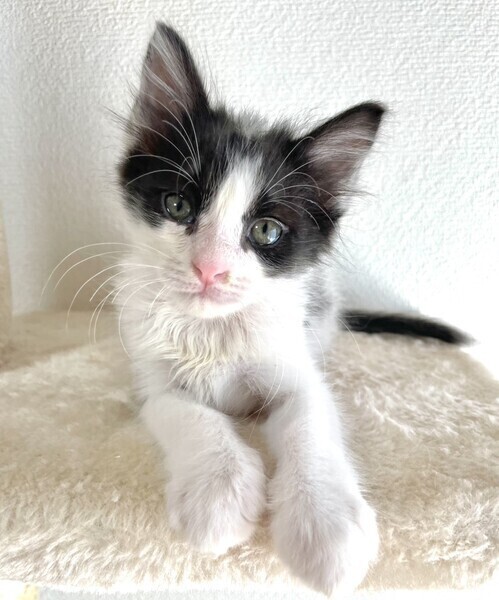 | 特徴(性格など) | 【仮名】こうじゅくん 【性格】150gで保護されたこうじゅくん☆ ミルクで育ったほんわか甘えん坊の男の子です。 ふわふわの柔らかい毛と黒丸模様がチャームポイントです♪ ご飯を食べるのが大好きでゆっくり,たくさん食べます。 どこかに5が隠れてるのでお迎えして見つけてください! 一緒に暮らすれいくんと毎日運動会やかくれんぼや にゃんプロレスをしていてちょっと押され気味ですが とっても仲良しなので一緒にお迎えしてくださると嬉しいです♪ ※1ピキ譲渡不可 |