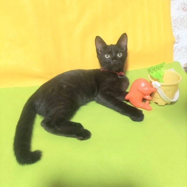 | 特徴(性格など) | 【仮名】やまとくん 【性格】いつも元気一杯なやまとくん☆ 仔猫らしい好奇心があり、 甘えん坊で猫じゃらしやボールで楽しく遊び俊敏に駆け回ります。 チュールが大好きな男の子です。 いつも1人で遊んでいるので 同世代のお友達とお迎えしていただくか 一緒に遊んでくれる先住さんのいるオウチだと やまとくんが嬉しいと思います。 ※1ピキ譲渡応相談 |