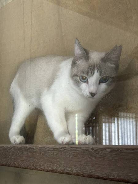 | 特徴(性格など) | 白地にグレー 大人しく 美しい猫です |