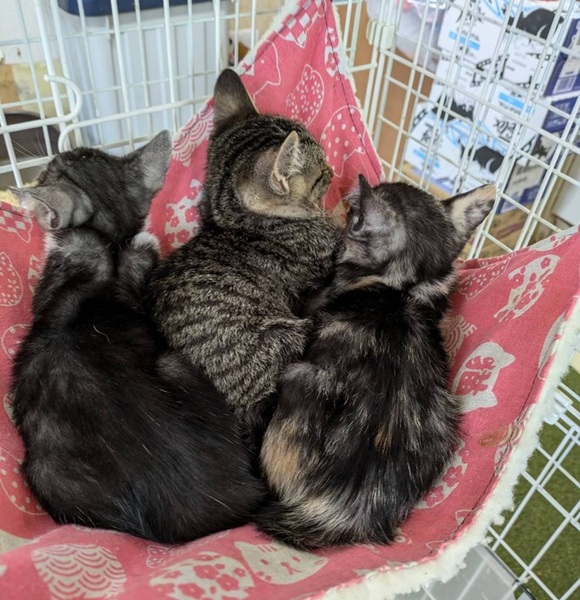 | 里親募集する理由 | とある飲食店の周りで、残飯をもらっている野良猫が増えてしまいました。 不妊去勢手術を進めていますが、ここで産まれた子猫は、里親さんを探すことにしました。 全部で3匹います。 生涯家族として大切にしてくださる里親さんを探しています。 |
