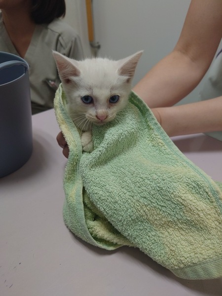 | 里親募集する理由 | 空き家の庭隅で親ネコとはぐれていた所を保護しました。 自宅には保護ネコが6匹おり、これ以上の飼育が難しい為、新たな里親さんに大事に可愛がって頂きたいと思います。 |