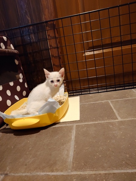 | 特徴(性格など) | 好奇心旺盛な元気な仔猫です。 ご飯もたくさん食べ、トイレも出来る賢い子です♪ |