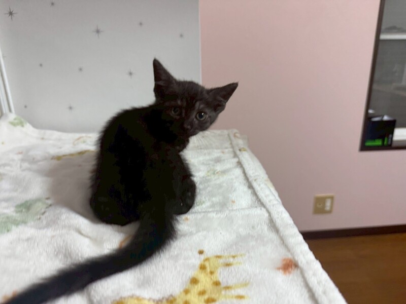 | 特徴(性格など) | スモーキーブラックのおんにゃの子♡ 兄妹で一番小柄ですが、とてもすばしっこいです! ママ大好きっ子のとめ、人には少し距離を取ります。 生粋の野良ママに育てられたため、人馴れ修行はこれからですので、そこを踏まえて下さる方。 脱走対策を講じて下さる方。 必要な医療にかけて下さる方。 まだ小さい子猫のため、お留守番短めの方(4時間程度)を希望致します。 |
