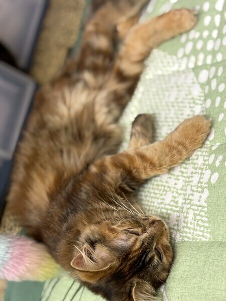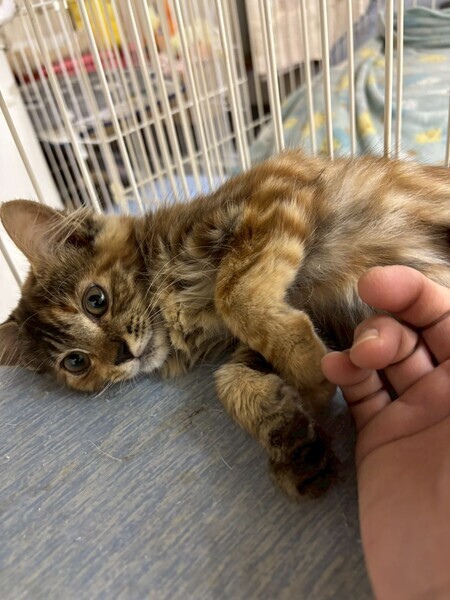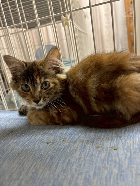 | 特徴(性格など) | 珍しい「サビトラ」模様の、長毛気味の子猫ちゃんです。 大人しい性格でまだ怖がりな所もあるので ウィンディ〜のペースで見守ってくださる方を希望致します!! |