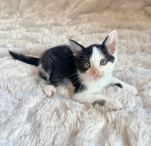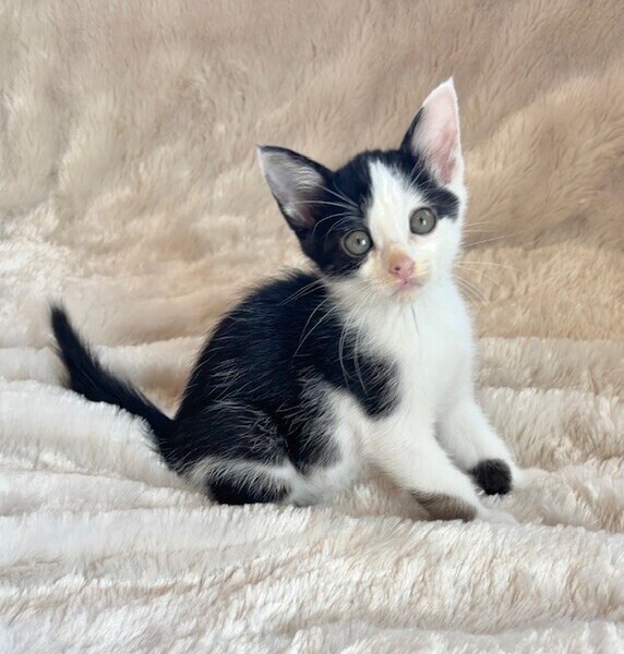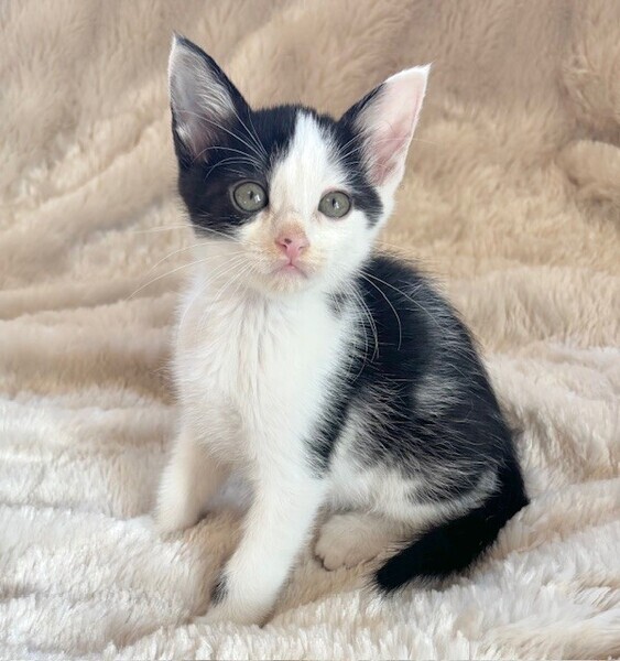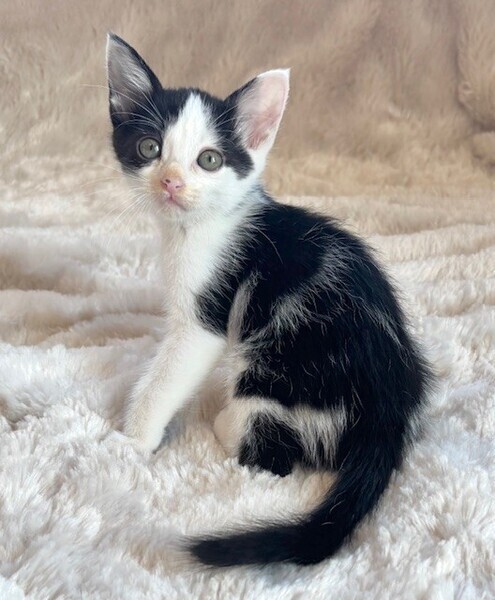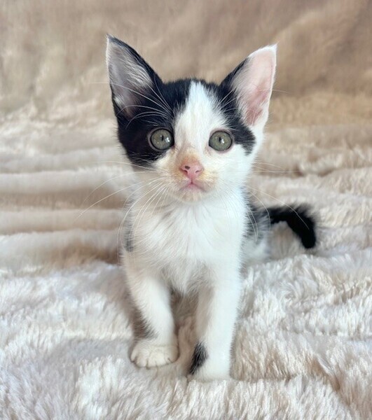 | 特徴(性格など) | 【仮名】ポップくん 【性格】これぞハチワレなポップくん♪ テンションあがると長いシッポを プンプンさせるのが可愛いんです! 兄妹の中でも小柄なんですが 遊びはパワフルで元気いっぱい! 甘える時も全力でミントちゃんと おヒザの争奪戦を繰り広げます♪ このコと一緒に暮らしたなら 刺激的な毎日が待ってますよ(笑) 兄妹のミントちゃんとウマが合うようで ペアでのお迎えを希望します♪ ※1ピキ譲渡不可 |