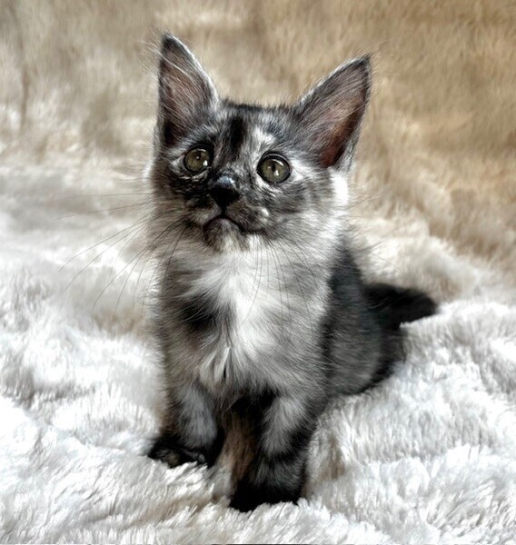 | 特徴(性格など) | 【仮名】ミントちゃん 【性格】パヤパヤ長毛のミントちゃん♪ この柄はなんていうんでしょうか? 基本サビなんでしょうけど シルバーの毛並みでかなりレアです♪ 基本的には甘えッコなんですが わりとおてんばちゃんカモ? おもちゃを振ると疾風のごとく現れ すごいスピードで飛び回ります! その時爽やかな風が吹きますよ(笑) 兄妹のポップくんとウマが合うようで ペアでのお迎えを希望します♪ ※1ピキ譲渡不可 |